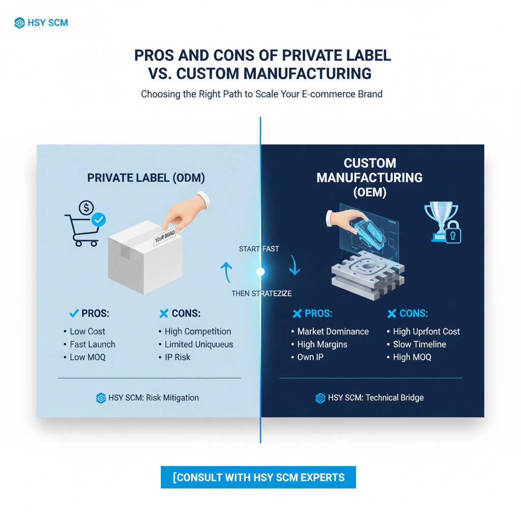 Once you have stable revenue, you should transition your winning products to Custom Manufacturing (OEM). This allows you to build defensible assets and secure your long-term success.