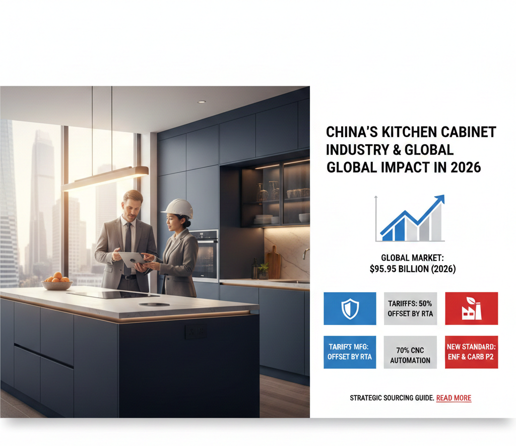 As we move into 2026, the landscape of China’s kitchen cabinet industry has shifted from a “low-cost workshop” to a “smart manufacturing powerhouse.” With the global kitchen cabinet market projected to hit USD 95.95 billion this year, China remains the epicenter, supplying approximately 39% of the world’s cabinetry.