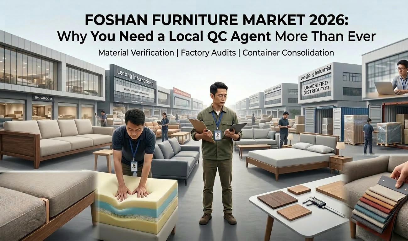 You can’t feel foam density through a computer screen, and you can’t test a sofa’s frame by looking at a PDF catalog. Here is the reality of the Foshan furniture market right now, and why having a local QC (Quality Control) agent is your only real insurance policy.