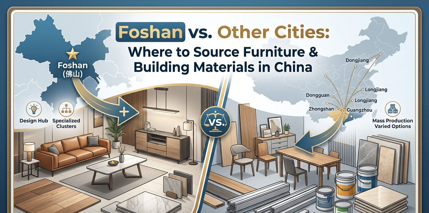 The Verdict: If you are buying standalone furniture to sell in a retail store, Dongguan is excellent. If you are outfitting a 200-room hotel and need the custom wardrobe veneer to match the bathroom vanity, and you need it shipped in the same container as the floor tiles, Foshan is the only logical choice.