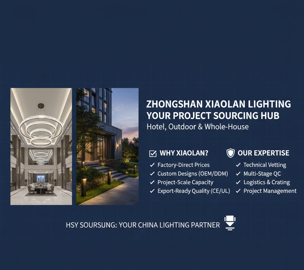 Sourcing Insight: Xiaolan factories excel at “Contract Lighting”—fixtures built to withstand the 24/7 usage of a hotel lobby or the harsh weather of an outdoor apartment complex.