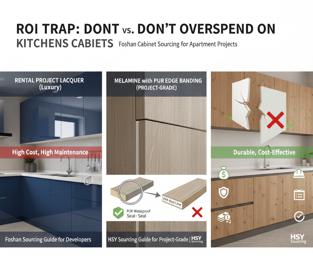 Many developers look at the shiny, mirror-like finish of lacquer in the factory’s catalog and think: “If I spend the extra money, I can charge higher rent.” As a sourcing agent based in Foshan who has managed hundreds of containers of cabinets for overseas projects, let me give you the honest truth: Putting high-gloss lacquer in a standard rental property is almost always a costly mistake. Melamine is the undisputed king of rental projects, but only if you buy the right kind.