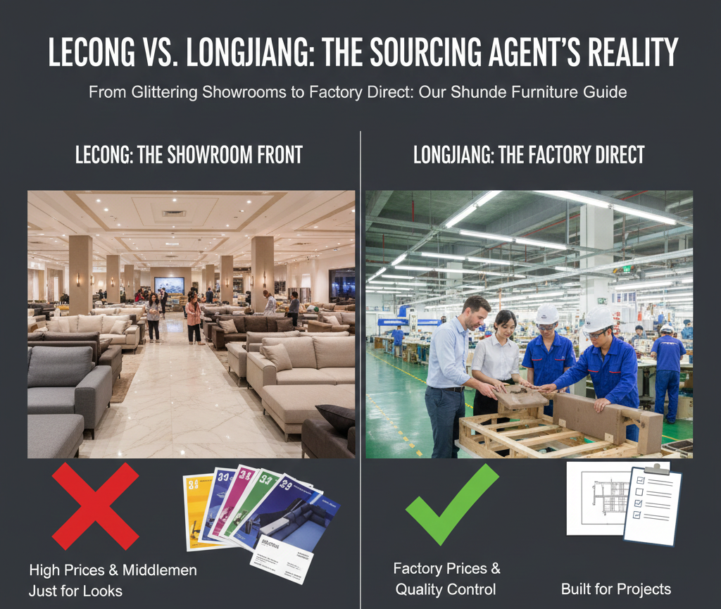 Foshan is a goldmine for furniture, but you have to know where to dig. Don’t get stuck in the malls of Lecong. Use them for ideas, then let us take you into the heart of Longjiang to find the real value.