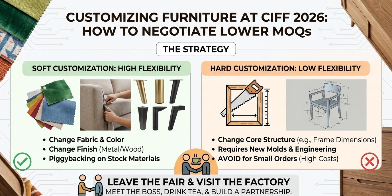 It’s March 2026. You are walking the aisles of CIFF Guangzhou, and you finally find the perfect dining chair. But you want it in green velvet instead of black leather, and you only need 20 pieces to test your market.