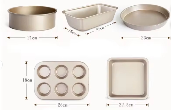 - Metal Bakeware: Non-stick cake pans, cookie sheets, muffin tins, and loaf pans (Carbon Steel / Aluminized Steel).