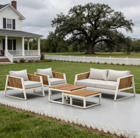 - Metal & Hybrid: Powder-coated aluminum, stainless steel, and teak-aluminum combinations.