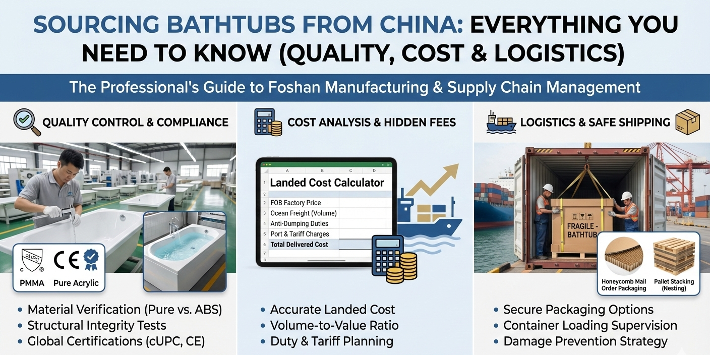 On the other hand, sourcing bathtubs is terrifying for the inexperienced. Unlike small electronics or textiles, a bathtub is a giant, fragile bubble of air. It takes up massive space in a container, it can crack if a forklift hits a bump, and if the quality is poor, you can’t exactly ask the customer to mail it back.
